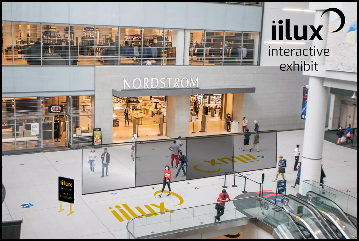For an outdoor advertisement, I came up with an interactive mall exhibit, featuring several large panes of iilux glass that can be played with by shoppers.